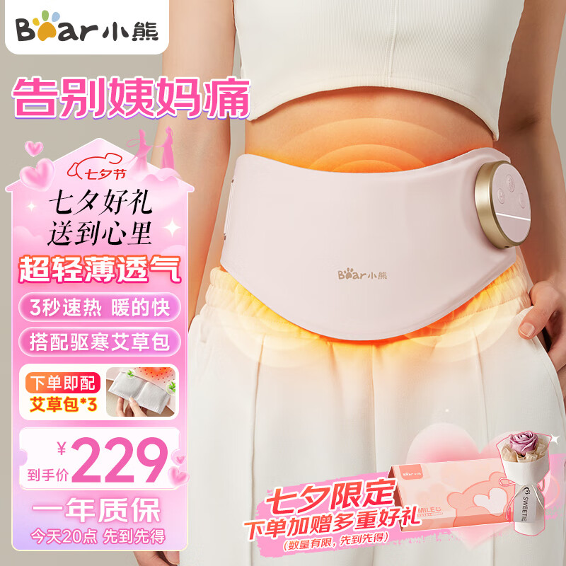 小熊(Bear)腰部按摩器 大姨妈神器暖宫腰带生理期按摩暖宝宝热敷送男女友生日七夕情人节礼物NGD-C07J5价格:319.00元!