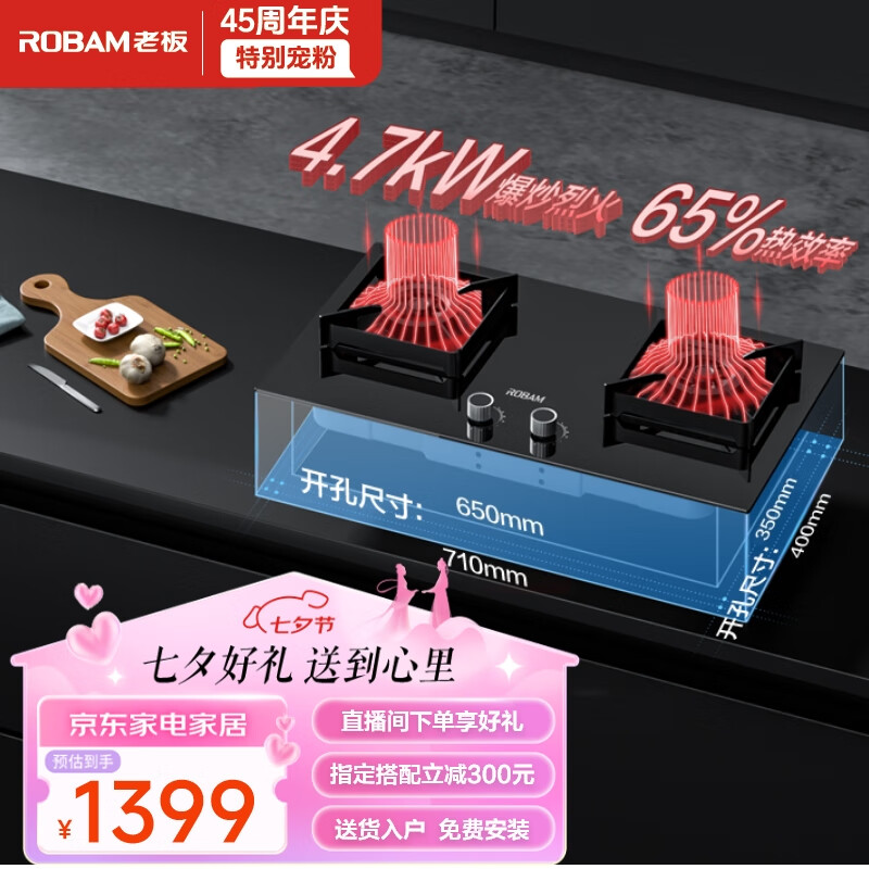 老板(Robam)控火大师37B6A灶具燃气灶天然气灶双灶 升级4.7kW嵌入式钢化玻璃高热效率猛火灶家用可调节灶台价格:1399.00元!
