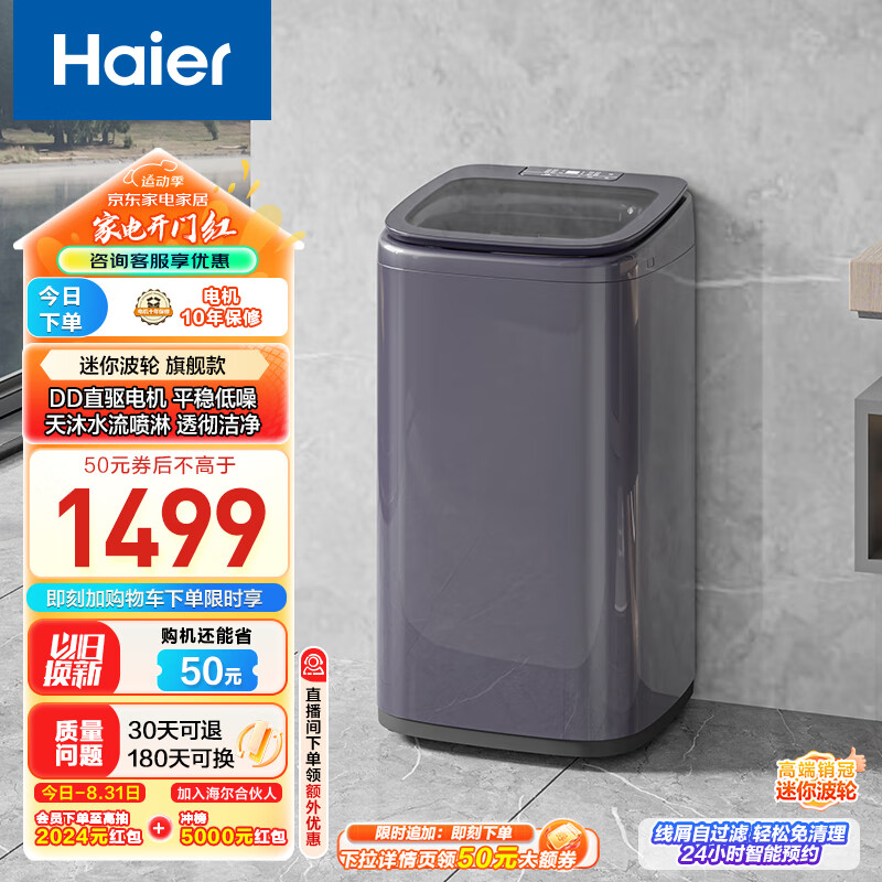海尔(Haier)迷你洗衣机全自动 洗衣机小型 婴儿洗衣机 内衣裤洗衣机家用5KG DD直驱变频 以旧换新 XQB50-B278价格:1549.00元!