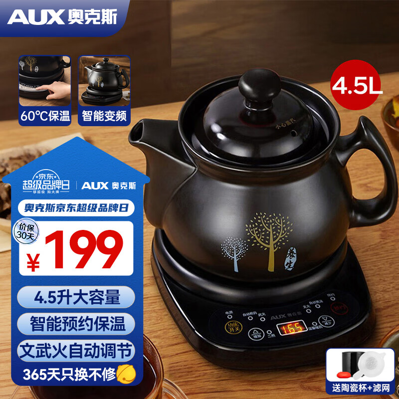 奥克斯(AUX)中药锅煎药壶 4.5L中药壶智能全自动免看管熬药电砂锅电药煲炖分体式陶瓷家用大容量养生壶YS0301价格:199.00元!