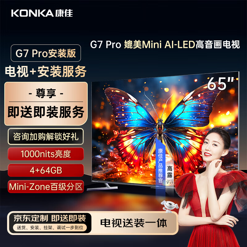 康佳电视 65G7 PRO 65英寸【包安装版】144Hz百级分区 智能液晶平板电视机【服务套装】送装一体含挂架价格:3338.00元!
