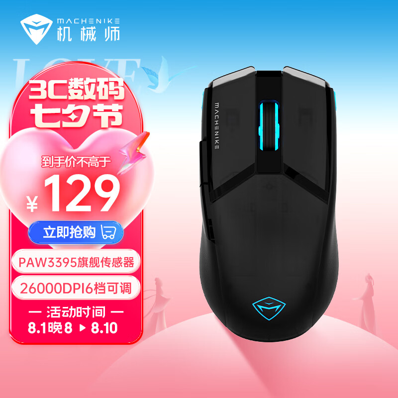 机械师(MACHENIKE)M7Pro 有线/无线双模鼠标 3395电竞游戏鼠标 轻量化人体工学鼠标 -探索黑价格:129.00元!