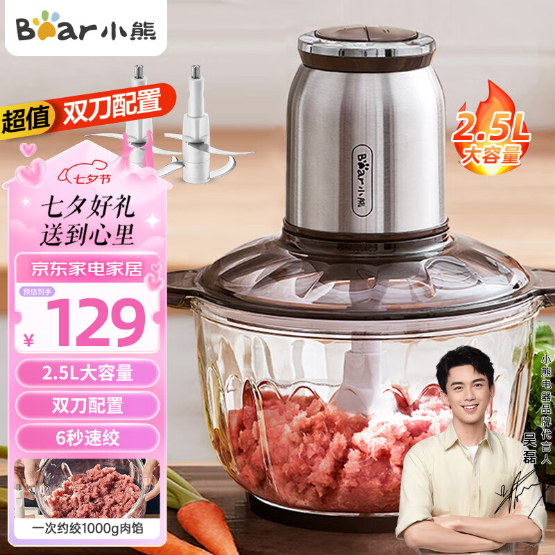 小熊(Bear)绞肉机家用 绞馅机 碎肉机 电动多功能料理搅拌打肉饺子肉馅蒜蓉机不锈钢 搅肉机QSJ-C04V3 2.5L价格:129.00元!