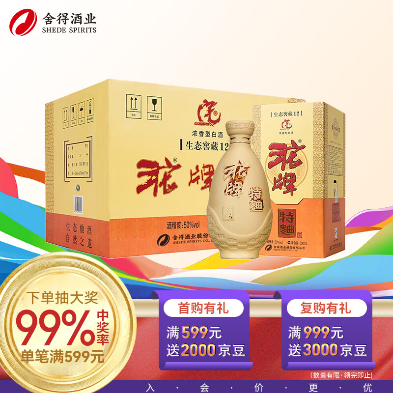 沱牌 特曲 生态窖藏12 浓香型白酒 50度 500ml*6瓶 整箱装价格:258.00元!