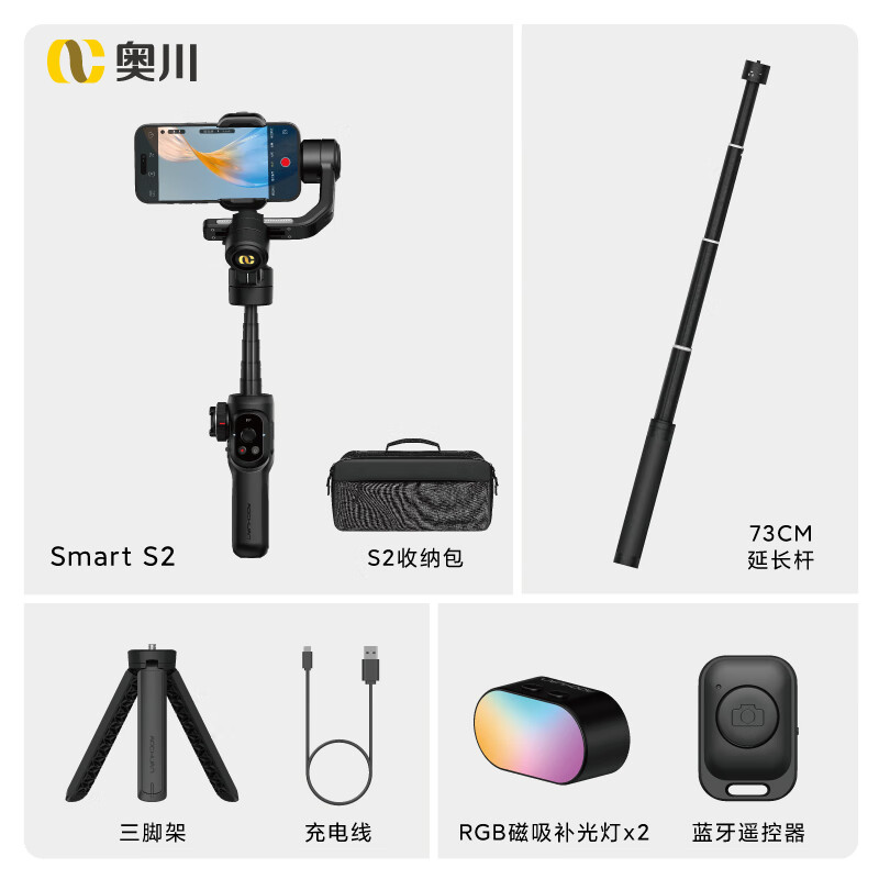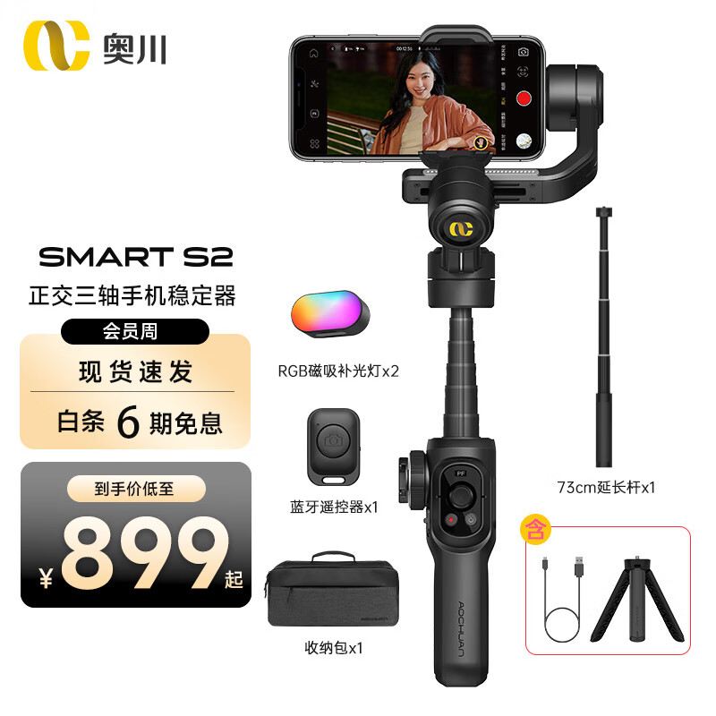 奥川S2手机防抖云台手持拍摄vlog视频神器智能平衡AI追踪跟拍自拍杆360度自动旋转三脚支架价格:1019.00元!