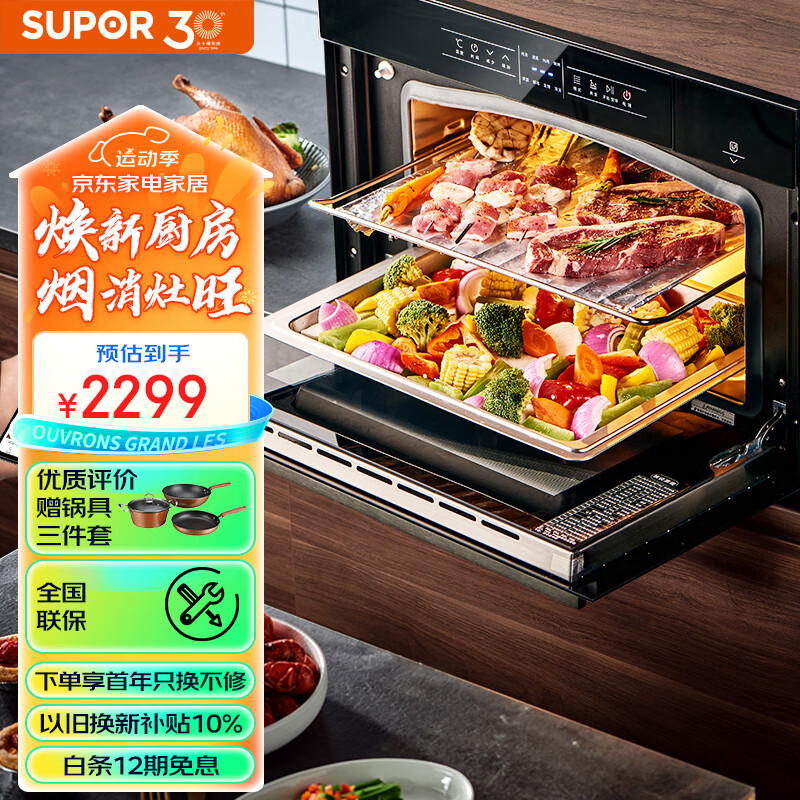 苏泊尔(SUPOR)嵌入式蒸烤箱一体机 家用蒸烤箱 速热智能控制 烤箱电蒸箱多功能大容量40L 709蒸烤价格:2299.00元!