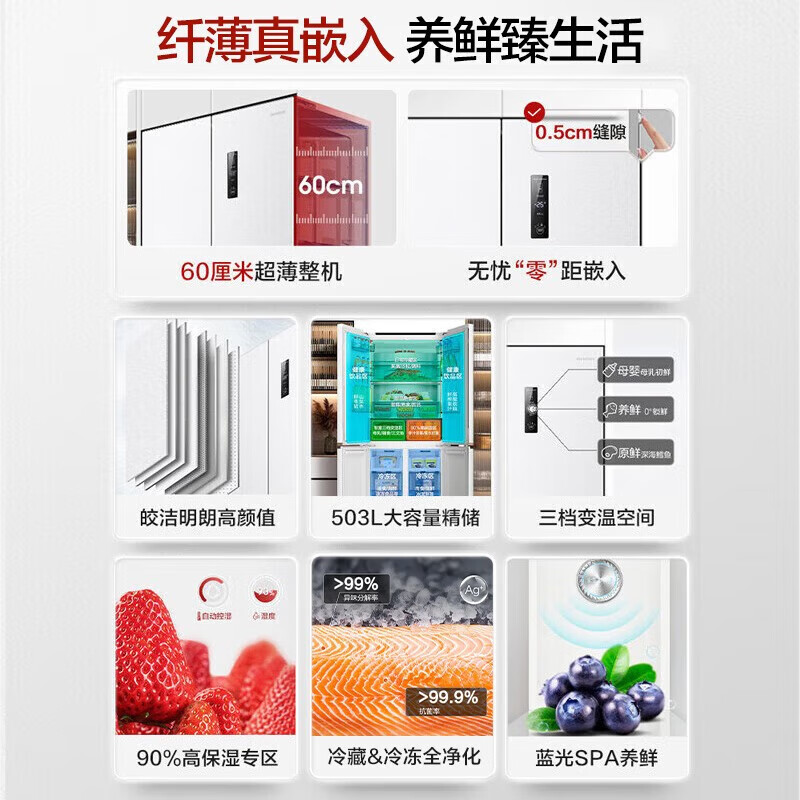 容声(Ronshen)【60cm平嵌系列】503升十字对开四开门超薄可嵌入式冰箱家用变频一级能效大容量BCD-503WD1FPQ价格:5899.00元!