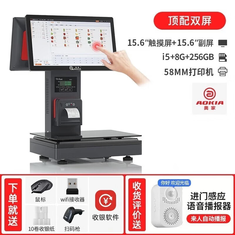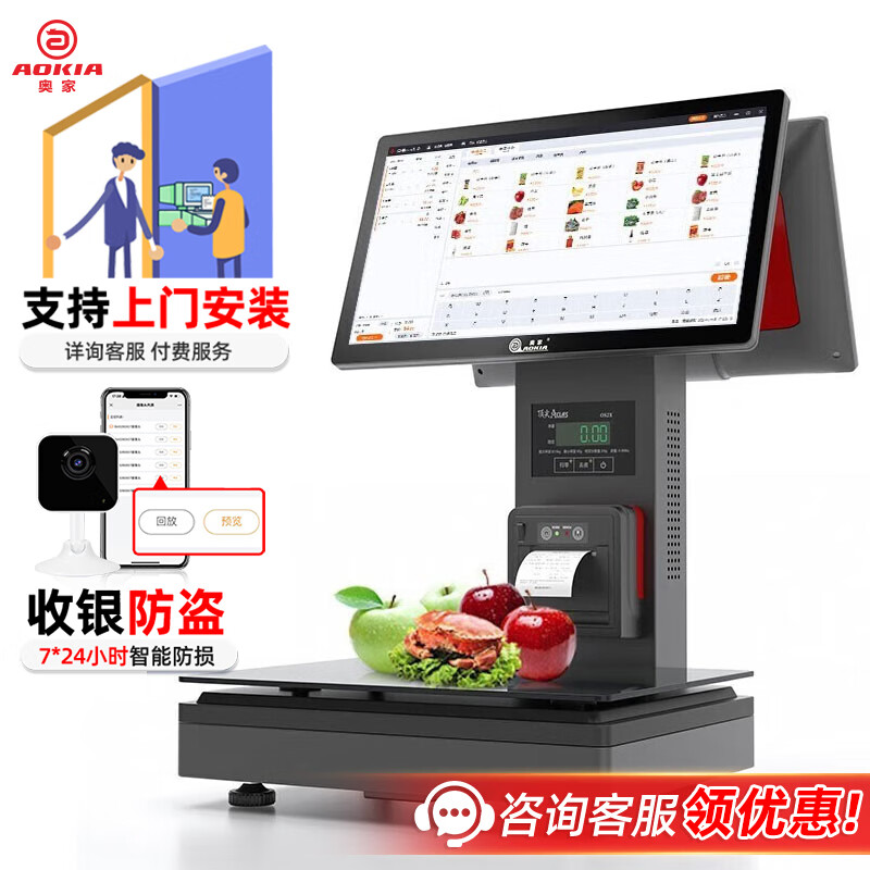 奥家Ai智能识物称重一体机收银秤收银机果蔬熟零食店生鲜超市便利店电子秤收款机电脑系统扫码点餐收银 双屏(8+256G)ACLAS秤体+收银大礼包价格:3099.00元!