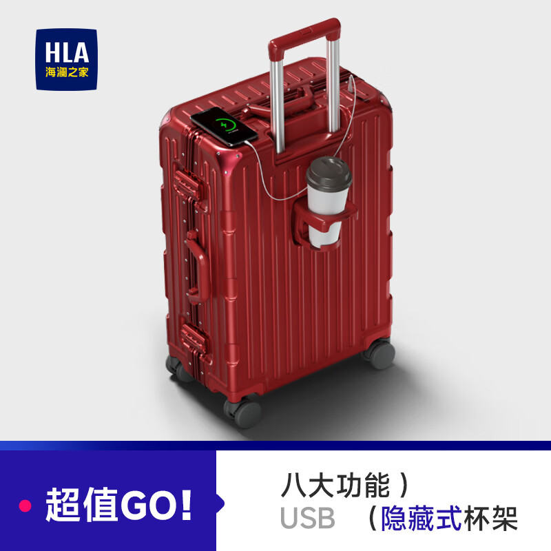海澜之家(HLA)行李箱男女学生铝框拉杆箱旅行密码托运皮箱 法拉红24英寸价格:297.30元!