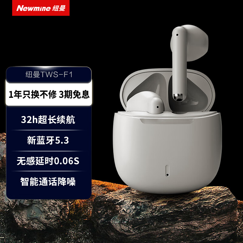 纽曼F1真无线蓝牙耳机 半入耳式音乐耳机 运动跑步防水通话降噪超长续航适用苹果小米华为礼物价格:138.00元!