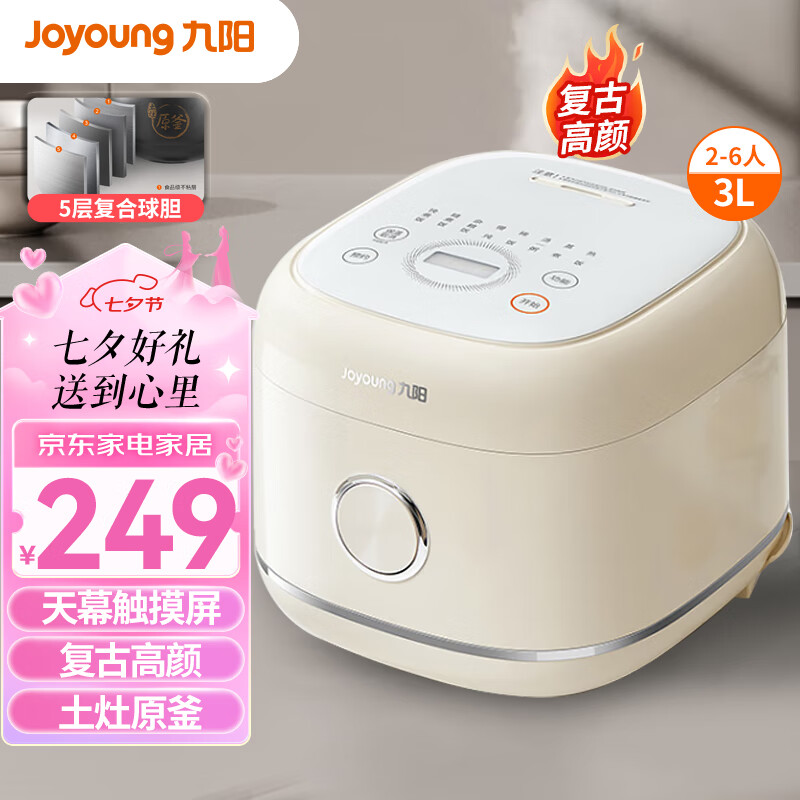 九阳(Joyoung)3升2-6人电饭煲电饭锅球形铝胆受热更均匀750W火力加热8大功能菜单3L漫生活系列F-30FY2价格:249.00元!