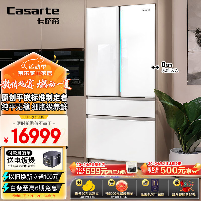 卡萨帝(Casarte)505升纯白系列原创平嵌法式四开门嵌入式白色家用一级能效超薄电冰箱变频BCD-505WGCFDM4WKU1价格:16999.00元!