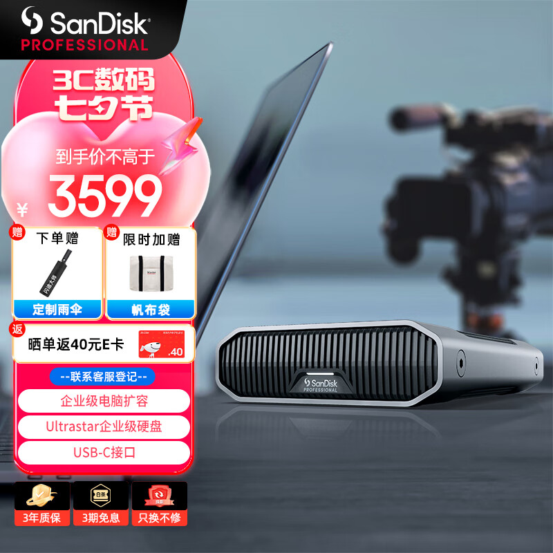 闪迪大师极客 12TB 企业级桌面移动硬盘 3.5英寸大容量 USB3.2 Gen2 传输速度250MB/S 专业高速 手机直连价格:3599.00元!
