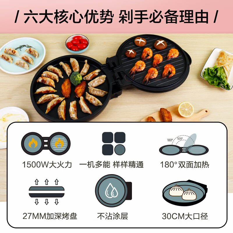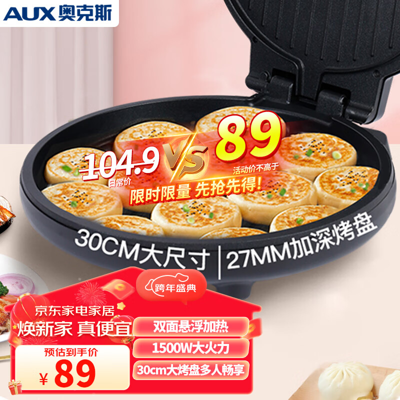 奥克斯(AUX)电饼铛 家用煎烤机早餐机三明治机蛋饼机双面烙饼机煎饼锅 烤盘加深款1500W大火力 JZ-D30C价格:89.00元!