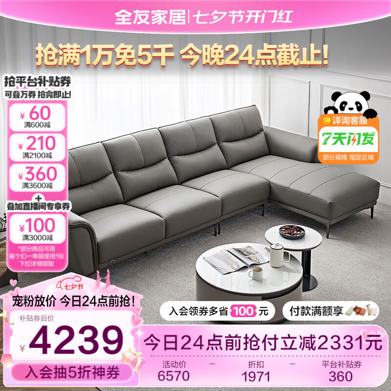 全友家居 真皮沙发客厅现代简约头层牛皮轻奢风皮艺沙发家用112011价格:6570.00元!