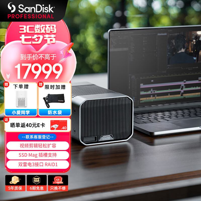 闪迪大师极锐 致镜36TB 双盘位企业级桌面移动硬盘 G-RAID? 磁盘列阵 双雷电3接口内置7200转高速桌面存储价格:17999.00元!
