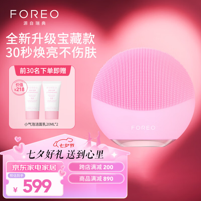斐珞尔(FOREO)露娜洁面仪LUNA mini3净透洁面仪平衡油脂洗脸仪电动清洁毛孔洗脸神器 粉红色 充电款价格:1689.00元!