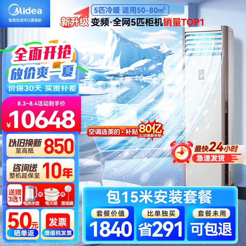美的(Midea)中央空调5匹柜式空调 5p商用柜机立式 冷暖新能效变频380V包15米铜管RFD-120LW/BSDN8Y-PA401(B3)A价格:10648.00元!