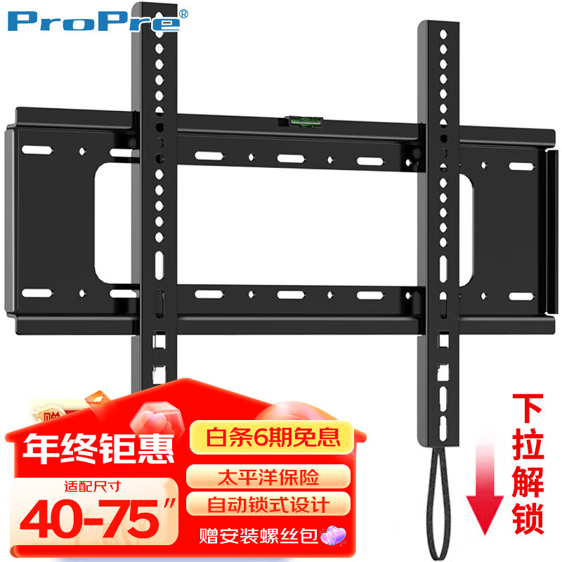 ProPre(40-75英寸)电视机挂架 固定电视壁挂架支架 通用小米海信创维TCL康佳华为智慧屏电视架(承重70kg)价格:49.90元!