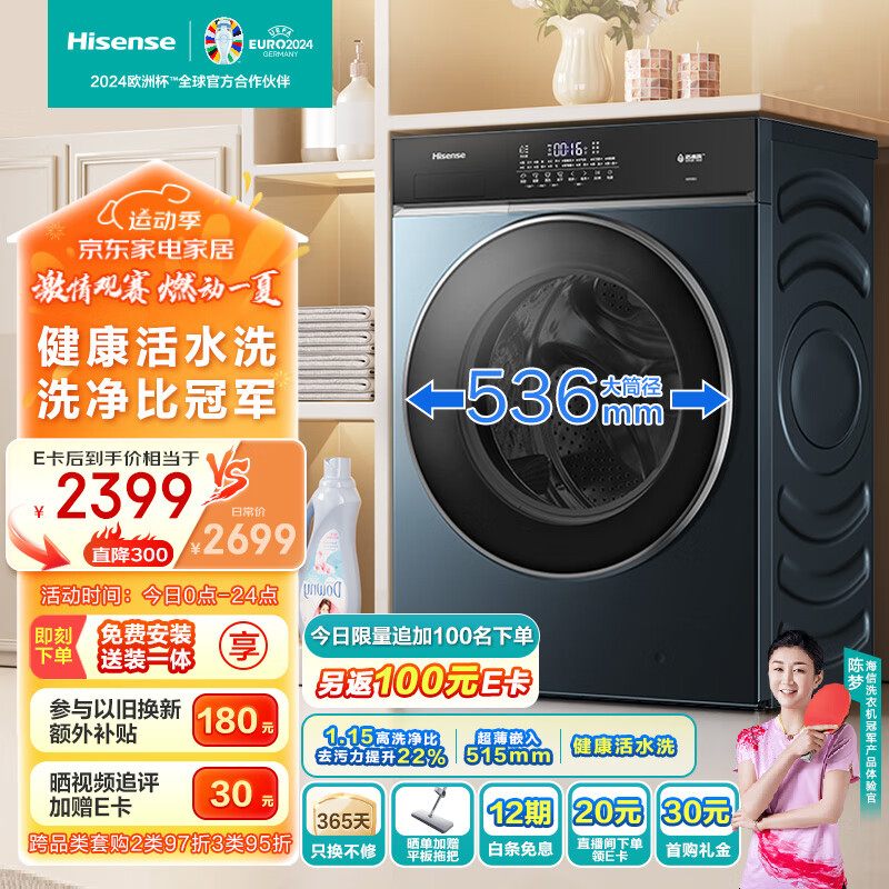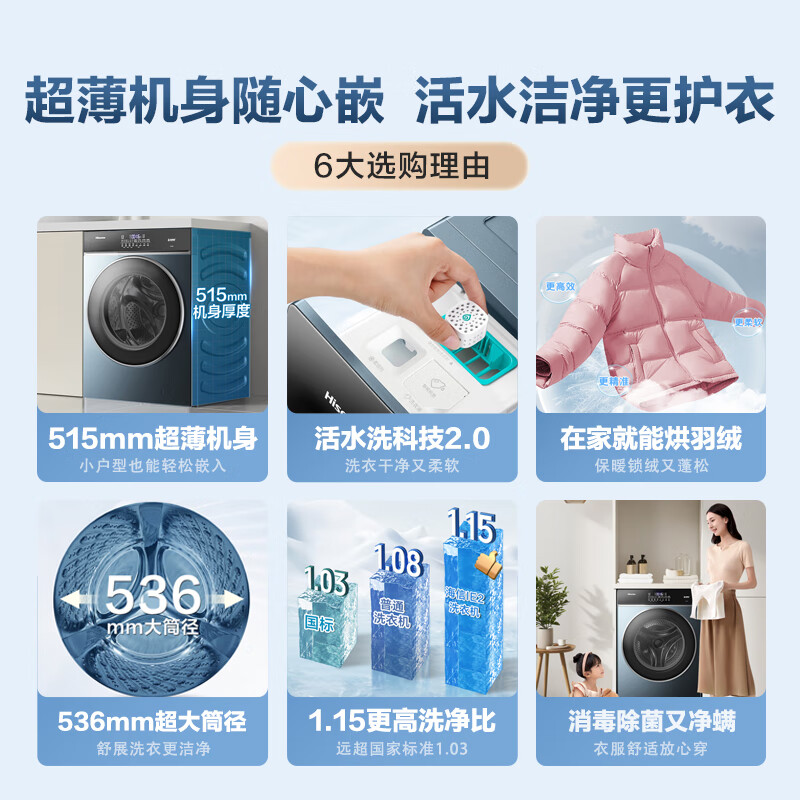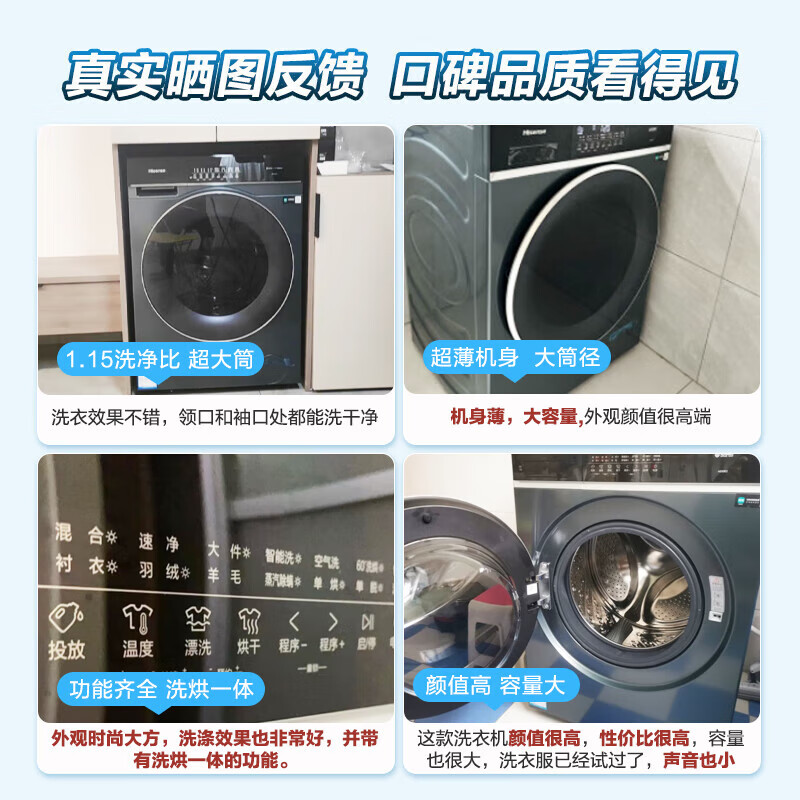 海信(Hisense)滚筒洗衣机全自动 10公斤洗烘一体大筒径超薄平嵌 1.15高洗净比活水洗2.0 智能投放 HD10IE2价格:2499.00元!