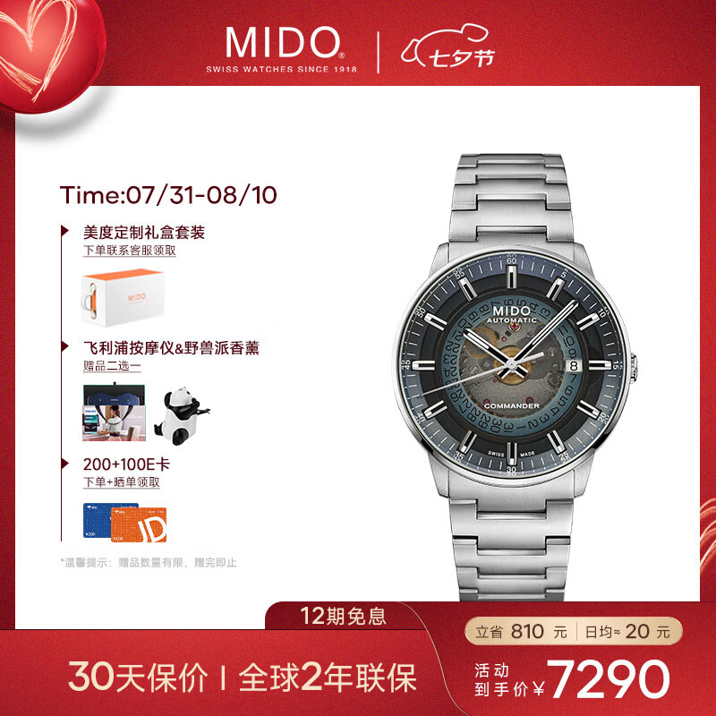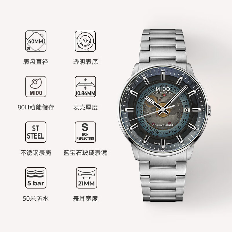 美度(MIDO)瑞士手表 指挥官 幻影款 商务休闲 机械钢带男表 七夕礼物送老公价格:7290.00元!