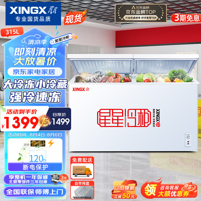 星星(XINGX) 315升 双温双箱冰柜 大冷冻小冷藏 卧式冰箱 大容积商用顶开门冷柜 BCD-315JE价格:1399.00元!