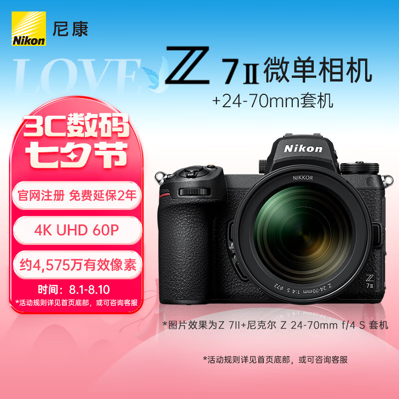 尼康(Nikon)Z 7II(Z7 2/Z72)全画幅微单 微单套机 (24-70mm f/4 微单镜头 约4,575万有效像素 5轴防抖)价格:20899.00元!