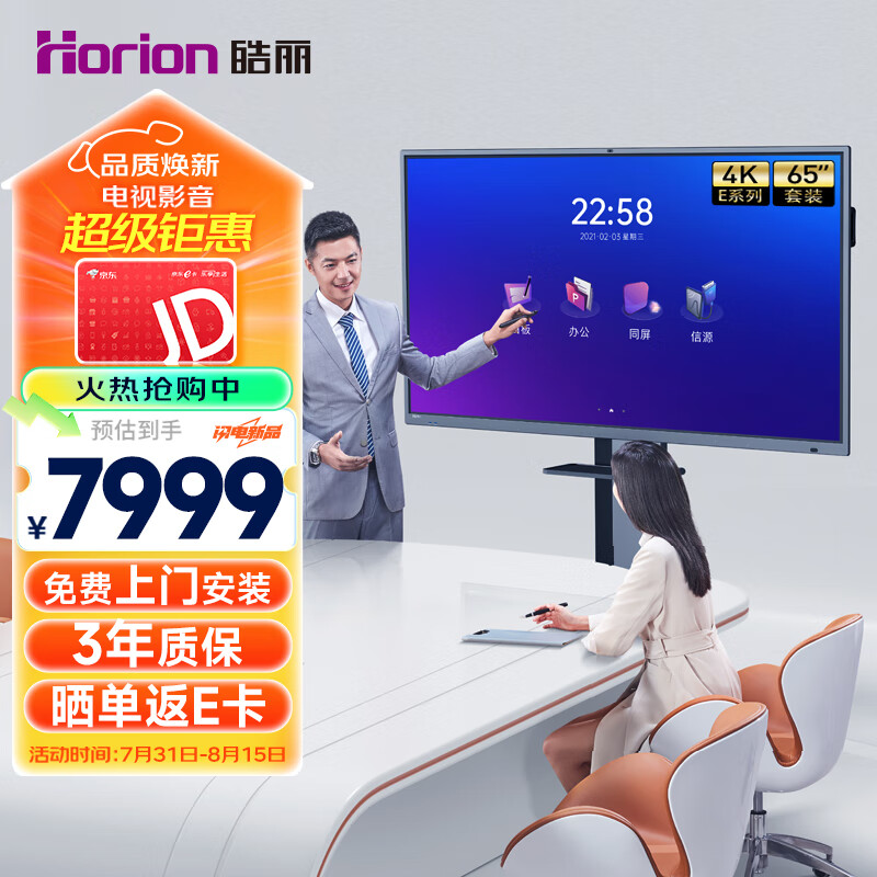 皓丽智能会议平板一体机65英寸触摸屏教学会议室大屏4K智慧投屏投影商业显示培训E65企业版套装价格:7949.00元!