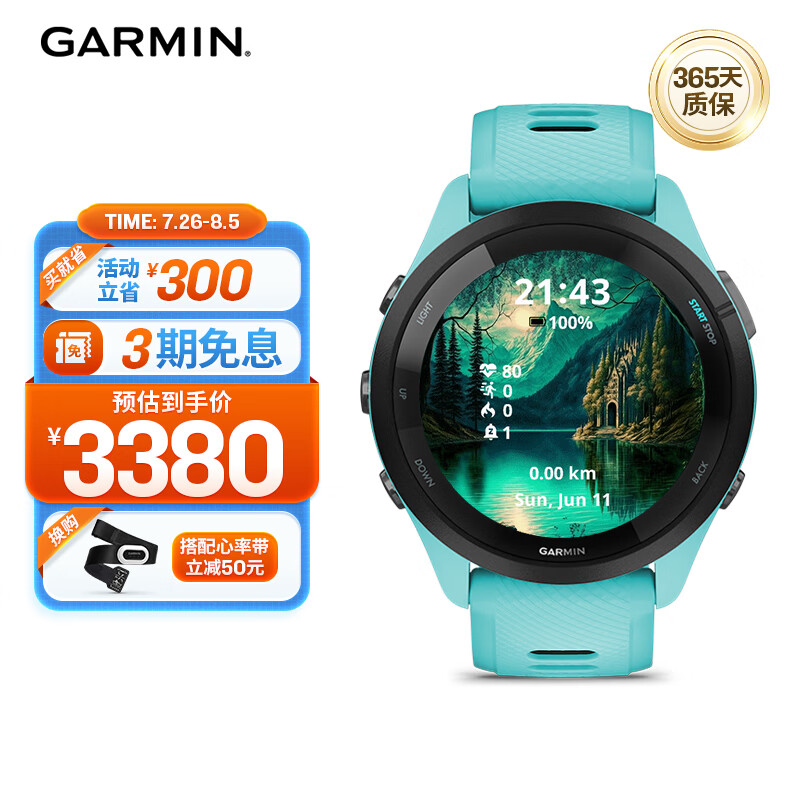 佳明(GARMIN)Forerunner265智能运动手表心率血氧铁三HRV多频多星GPS湖水蓝价格:3380.00元!