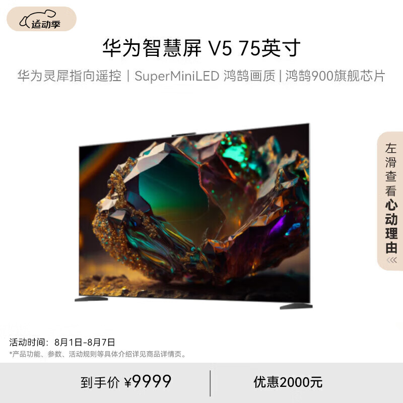 华为智慧屏 V5 75英寸 MiniLED鸿鹄画质 超薄屏4K超高清智能大屏护眼液晶电视机HD75ARKB价格:9999.00元!
