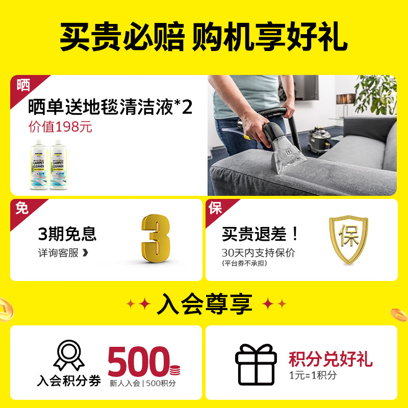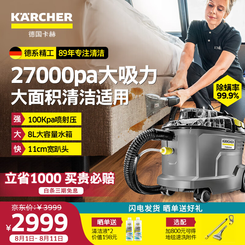 KARCHER德国卡赫 布艺沙发清洗机大吸力喷抽吸一体机地毯清洗机窗帘汽车座椅清洗商用 原装进口puzzi8/1价格:2999.00元!