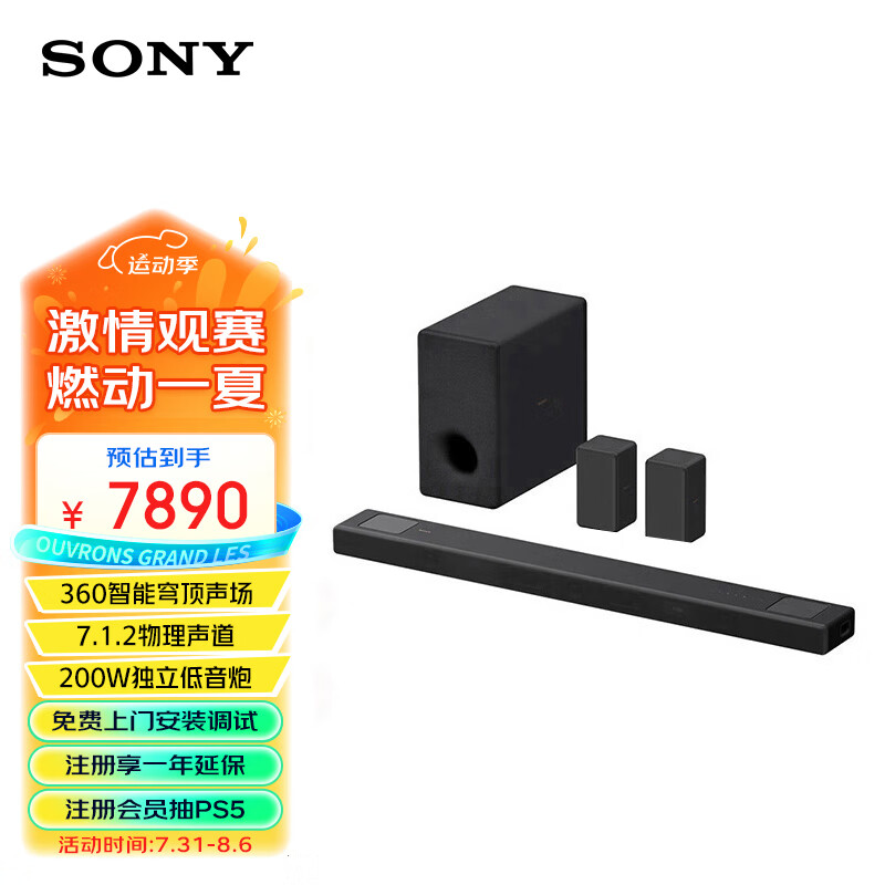 索尼(SONY)HT-A5000+SW3+RS3S 环绕套装 7.1.2 全景声 360智能穹顶 4K/120Hz 回音壁 家庭影院 电视音响价格:7890.00元!