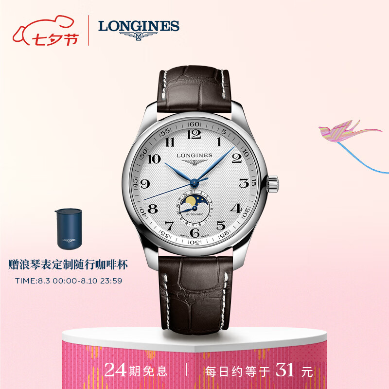 浪琴(LONGINES)瑞士手表 名匠系列 月相机械皮带男表 七夕情人节礼物L29194783价格:22200.00元!