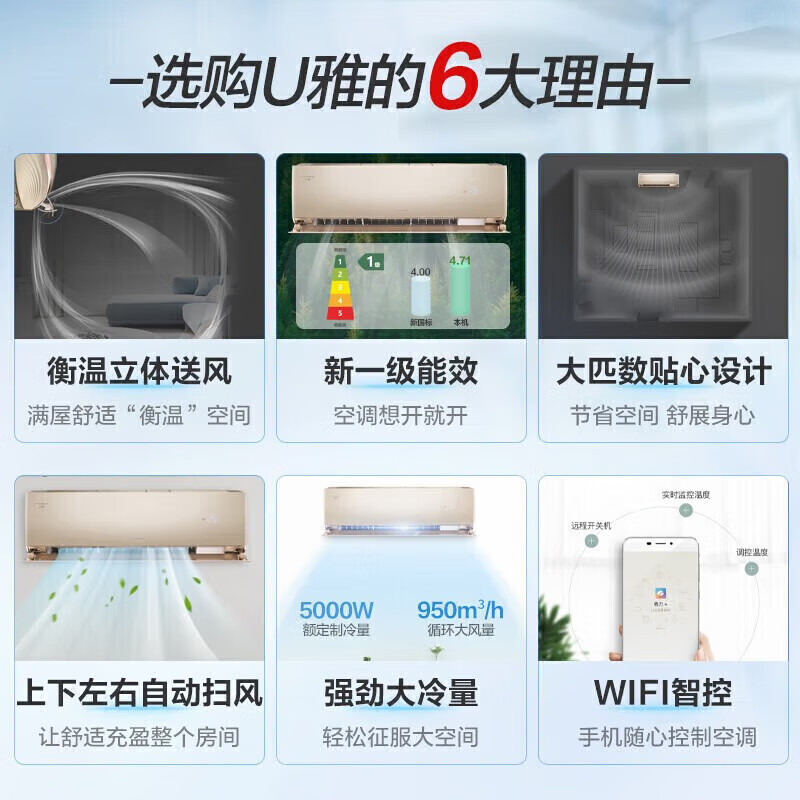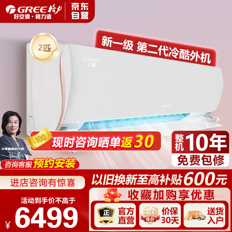 格力(GREE)空调2匹 U雅 新一级能效 变频冷暖自清洁 速冷大风量 壁挂式空调挂机 智选(1)价格:6299.00元!