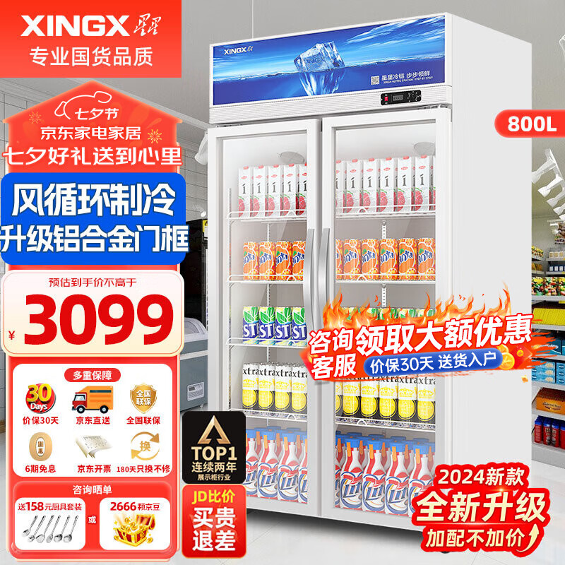 星星(XINGX)展示柜冷藏保鲜柜双开门立式冰柜饮料柜 商用冰箱风直冷超市便利店水果啤酒冷柜 2024款800升 双门风循环 LSC-818Y价格:3099.00元!