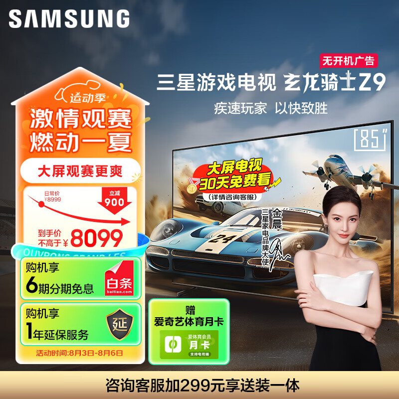 三星(SAMSUNG)玄龙骑士Z9 85英寸 3+64G 专业游戏电视 5.8ms 低延迟 无开机广告 UA85ZU9000JXXZ价格:8099.00元!