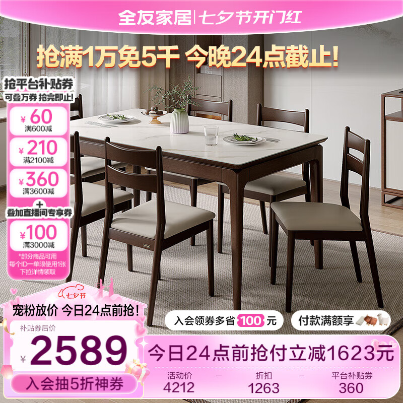 全友家居 餐椅新中式实木框架椅餐厅舒适科技皮软包椅子129706价格:4212.86元!