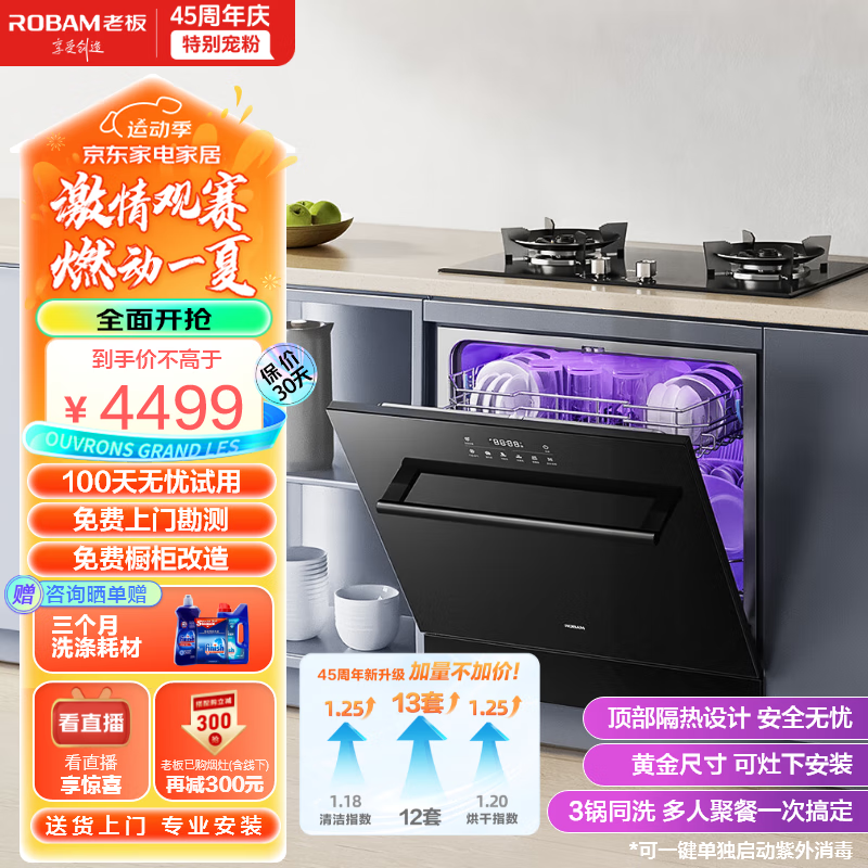 老板(Robam)B60D灶下可装13套灶下洗碗机嵌入式紫外消杀除菌柜热风烘干168h长效存储一级水效家用快速洗价格:4499.00元!