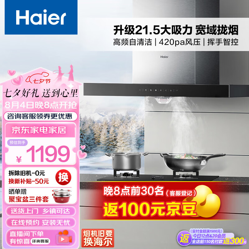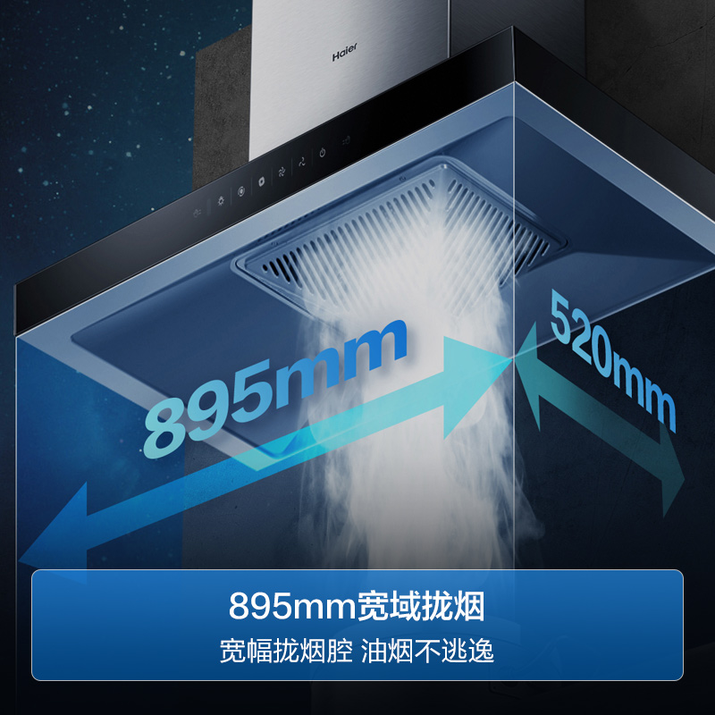 海尔(Haier)抽油烟机 顶吸式油烟机家用 升级21.5m3/min风量 高频自清洁挥手智控 以旧换新 抽油烟机大吸力T11价格:1299.00元!