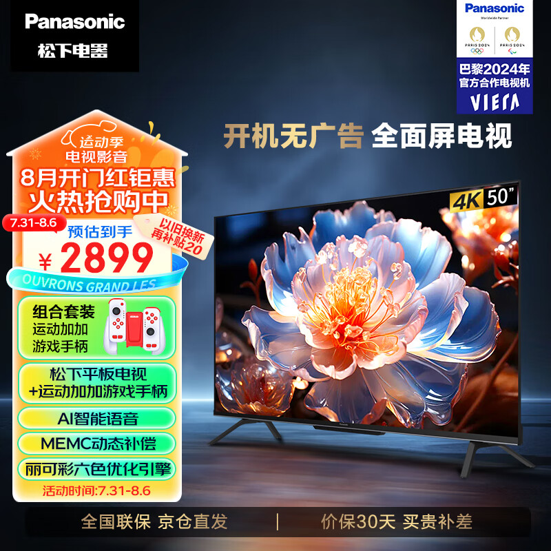 松下(Panasonic)电视LX580 50英寸游戏手柄套装 丽可彩4K 屏MEMC AI语音 开机无广告智能电视机 TH-50LX580C价格:2699.00元!