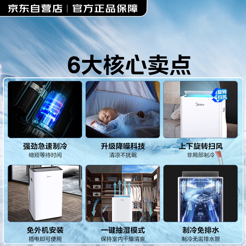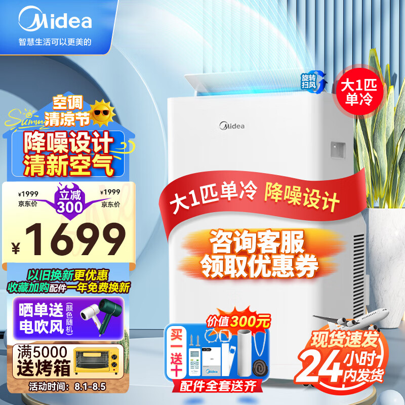 美的(Midea)移动空调大1匹单冷 一体机空调 家用厨房空调免安装免排水 KY-26/N1Y-PQ价格:1699.00元!