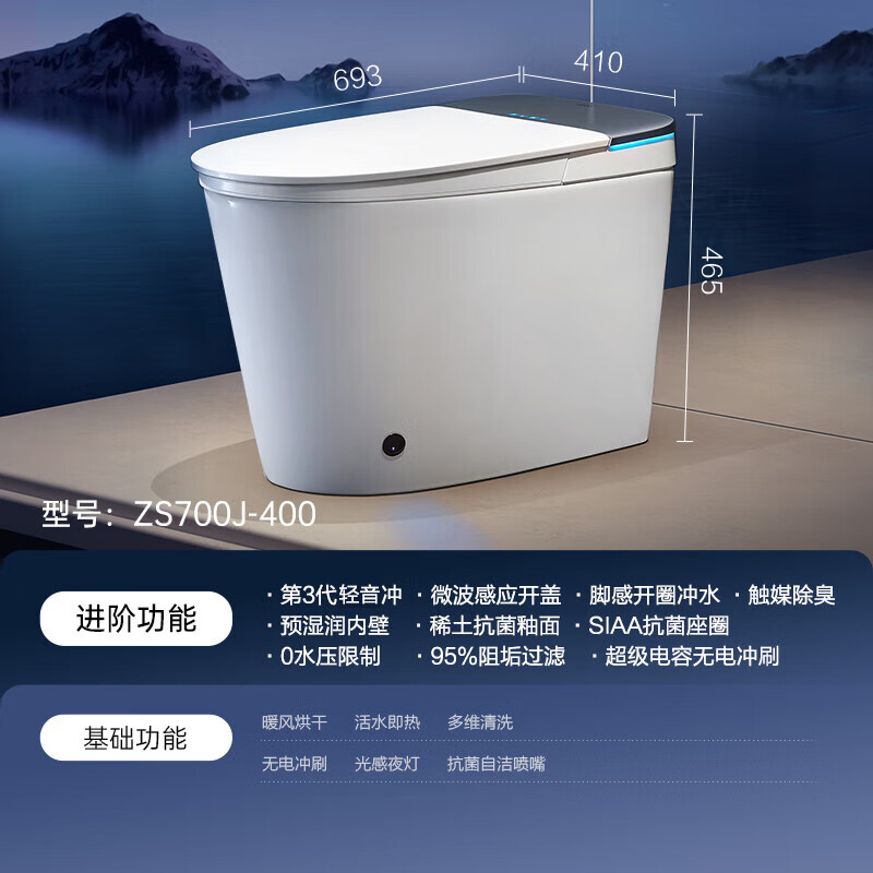 九牧(JOMOO)无水压限制智能马桶节水低音冲自动翻盖智能坐便器ZS700J 400坑距价格:4399.00元!
