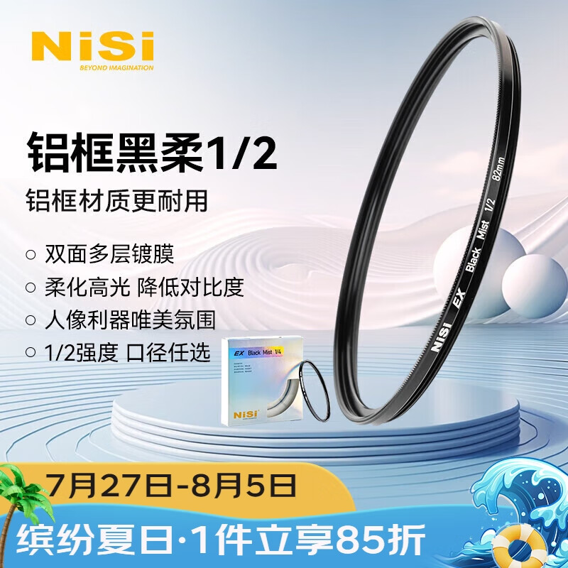 耐司(NiSi)1/2黑柔滤镜 95mm ex铝框二分之一柔化镜柔焦镜朦胧镜人像拍摄美颜镜微单相机单反适用索尼佳能价格:348.00元!
