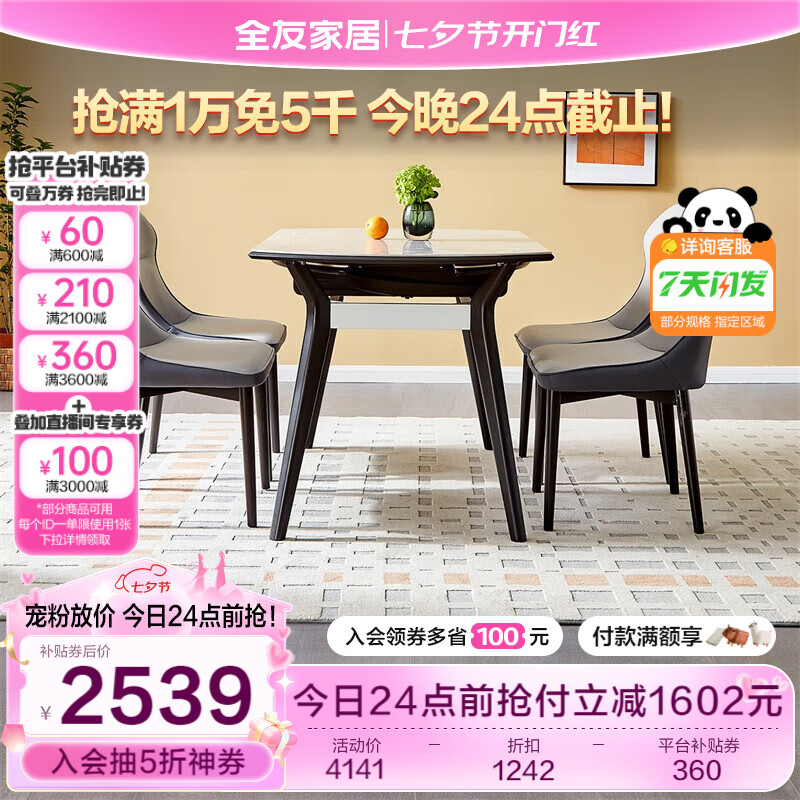 全友家居 现代轻奢岩板餐桌椅餐厅家具可方可圆伸缩折叠餐桌DW1059价格:4141.43元!