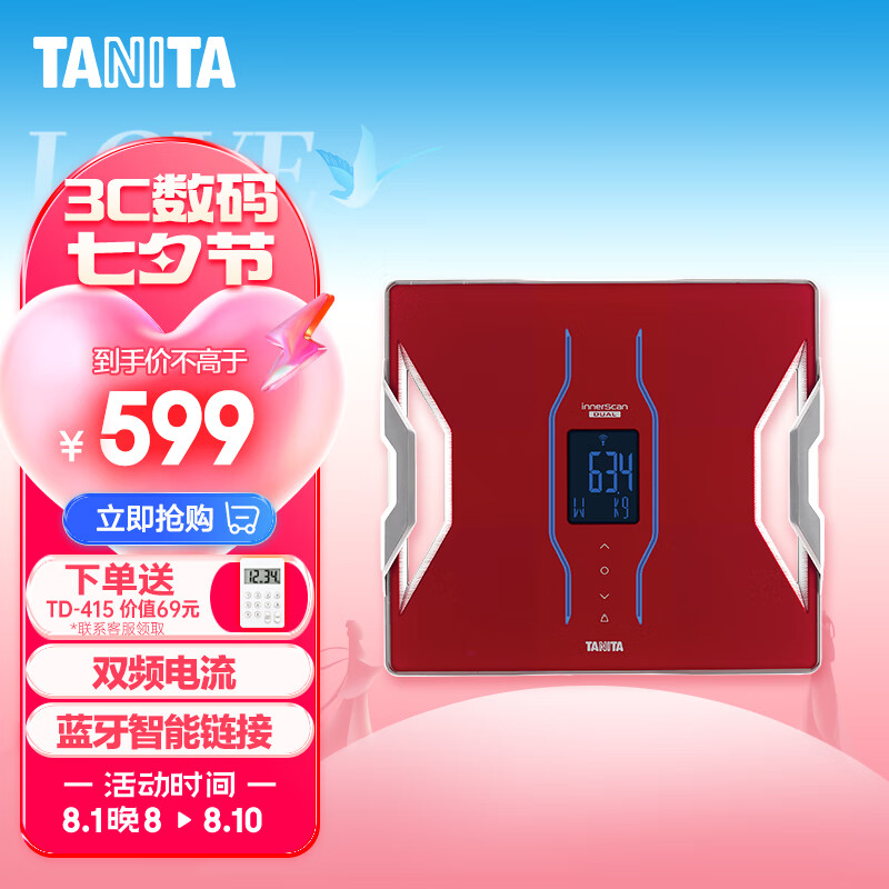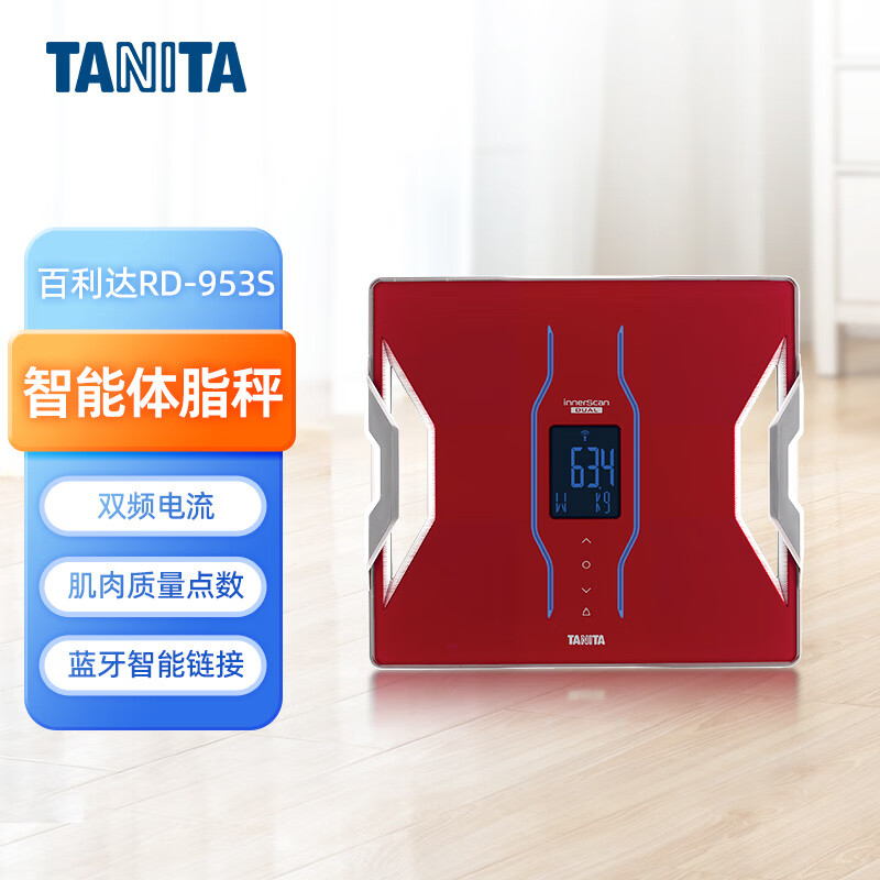 百利达(TANITA)RD-953S 专业智能电子秤体脂秤 减肥专用精准 健康检测家用 双频四电极 日本品牌 红色价格:999.00元!