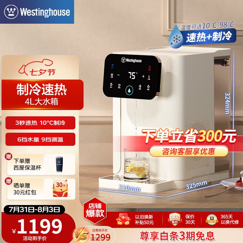 西屋(Westinghouse)台式即热式饮水机小型饮水机家用 制冷速热办公台式客厅台面即热饮水机 免安装一键速热恒温直饮机 WFH40-W2S 即热制冷型价格:1499.00元!