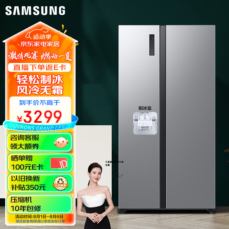 三星(SAMSUNG)516L双开门超薄冰箱制冰变频风冷无霜全环绕气流 家用大容量智能保鲜以旧换新 RS52B3000M9/SC价格:3299.00元!