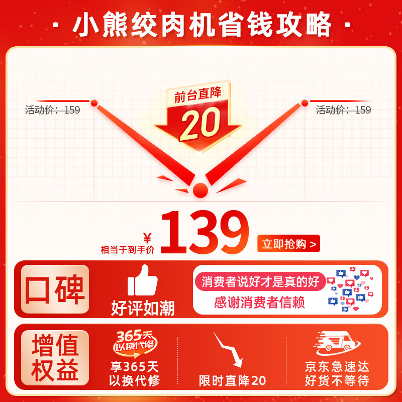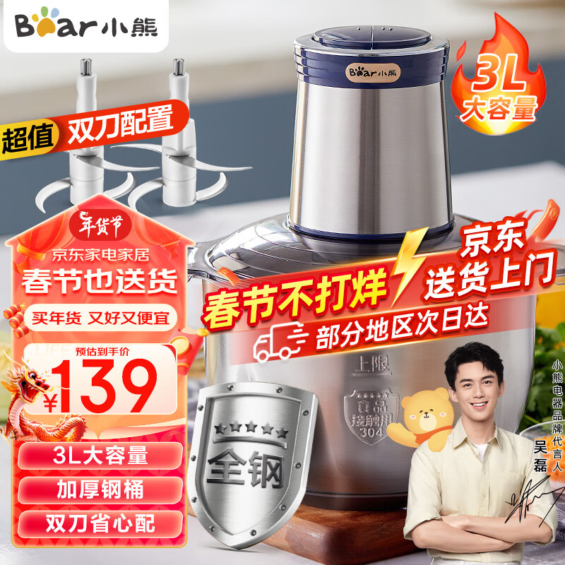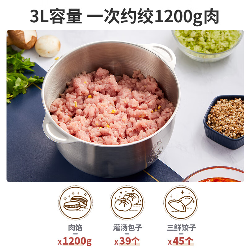 小熊(Bear)绞肉机家用 绞馅机 碎肉机 电动多功能搅拌饺子肉馅蒜蓉机全钢 大容量搅肉机 QSJ-C04Q1 3L单杯价格:139.00元!