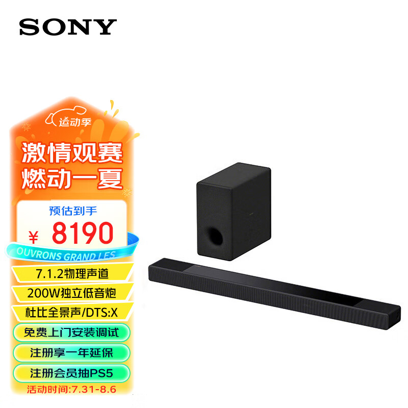 索尼(SONY)HT-A7000+SW3 标准低音套装 7.1.2 全景声 4K120Hz VRR ALLM 回音壁 家庭影院 电视音响 蓝牙价格:8190.00元!