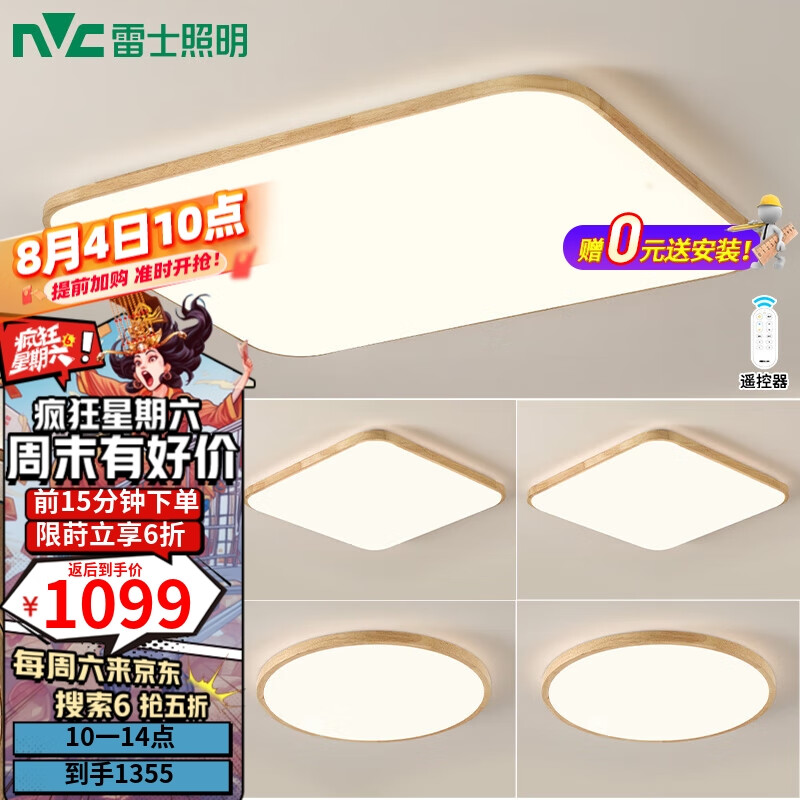 雷士(NVC)LED吸顶灯客厅餐厅卧室侘寂新中式原木典雅超薄套餐WHXD118W/F-03价格:1935.00元!